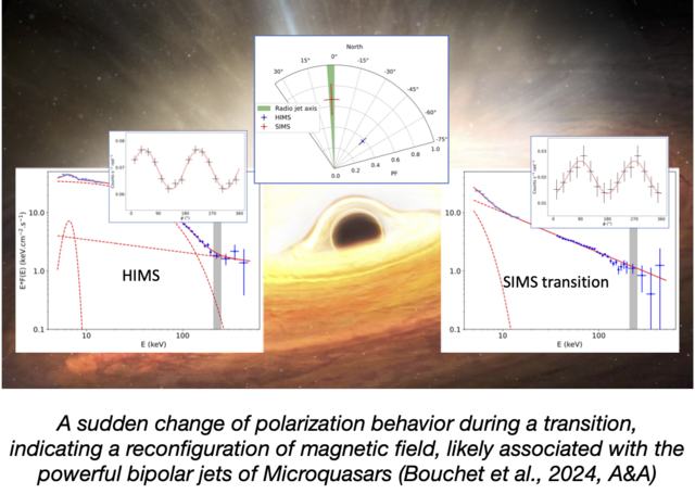Understanding the accretion-ejection process in Black Hole X-ray binaries which behave as ‘Microquasars’. Using the novel methods of spectro-polarization analysis, it is possible to constrain the emission processes at high-energy, as well as the geometry of the source and the configuration of the magnetic fields. In turn, this information allows us to understand how matter is accelerated in those extreme environments. The INTEGRAL/IBIS ‘Compton mode’ is particularly useful for this task, as it allows precise polarization measurements in the soft gamma-rays.
