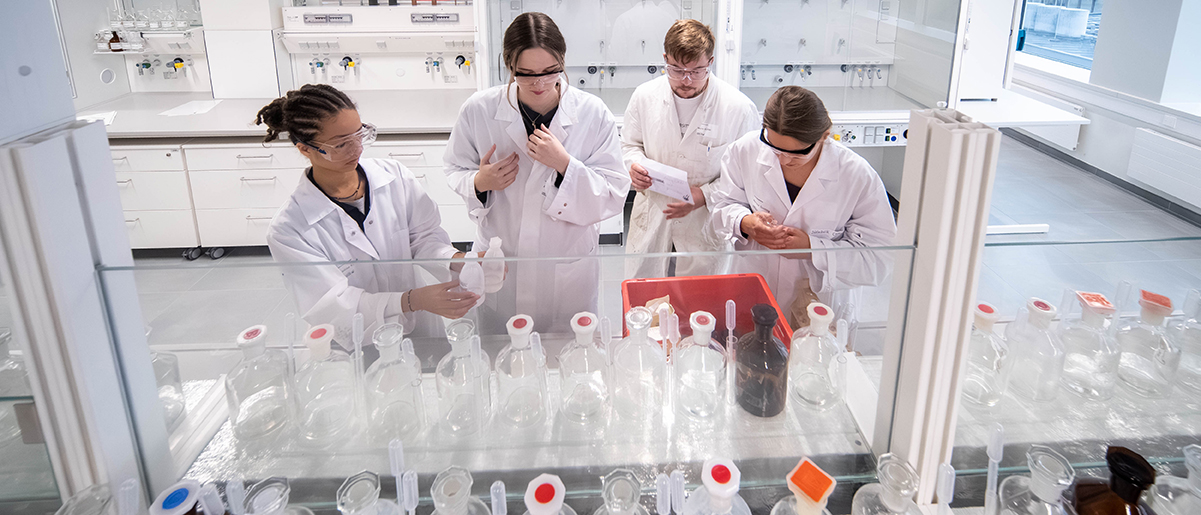 Dazu hat er gemeinsam mit seinen Kolleginnen und Kollegen Kisten voller Geräte und Materialien gepackt. Bunsenbrenner, Glaskolben und andere Dinge standen in den brandneuen Laboren des Praktikumsgebäudes auf dem Hubland-Campus bereit. Ausgestattet mit Kitteln und Schutzbrillen legten die Schülerinnen und Schüler in kleinen Teams los, experimentierten selbstständig, probierten eigene Lösungswege aus und gewannen so einen lebendigen Einblick in die Arbeitswelt der Chemie – zum Beispiel bei der Extraktion von Essenzen aus Früchten. Schnell merkten sie, dass Chemie nicht nur Theorie ist, sondern ein lebendiges, praxisnahes Forschungsfeld.