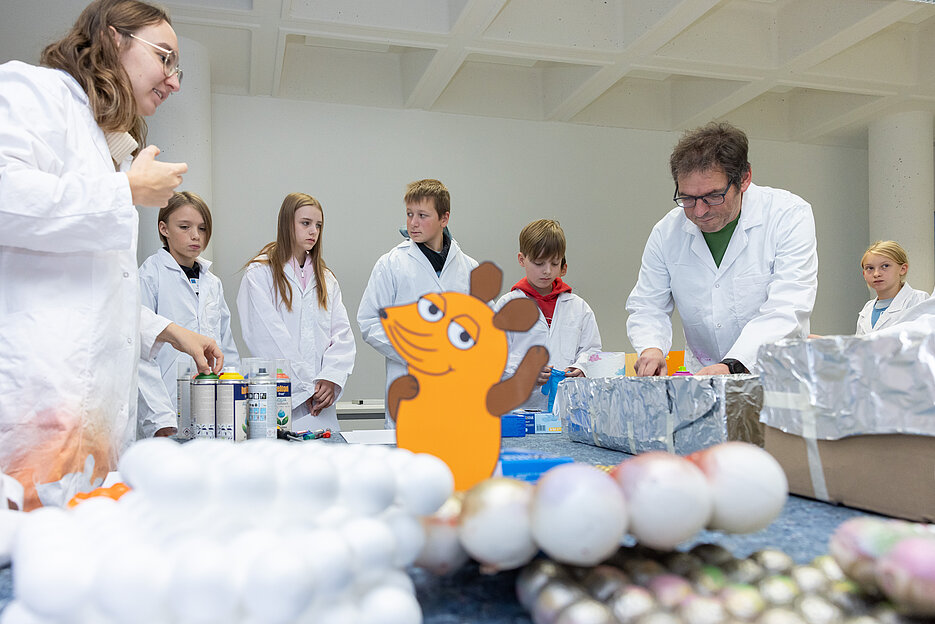 Rund 50 Kinder ab elf Jahren machten sich gemeinsam mit Studierenden und Wissenschaftlerinnen und Wissenschaftlern auf eine spannende Reise durch die Welt der Physik, Astronomie und Raumfahrt.