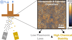 Silver (Ag) is considered an ideal material for plasmonic applications in the visible wavelength regime due to its superior optical properties, but its use is limited by the poor chemical stability and structural quality of thermally evaporated thin films and resulting nanostructures. In this study, we present a simple approach to enhance the structural and optical quality as well as the chemical stability of Ag thin films by alloying with gold (Au) through thermal coevaporation. We investigate Ag100–xAux thin films with Au contents ranging from 5 to 20 at.% analyzing their surface morphology, crystallite structure, optical properties, and chemical stability. Our results show that low Au concentrations significantly reduce the roughness of coevaporated thin films (down to Rq = 0.4 nm) and significantly enhance the chemical stability, while maintaining a defined crystallite growth. Importantly, these improvements are achieved without the need for template stripping, metallic wetting layers, or epitaxial substrates. Among the compositions studied, Ag95Au5 thin films exhibit the highest chemical stability, lowest optical losses in the visible spectral range, and excellent plasmonic properties even outcompeting pure Ag. As a proof of concept, we fabricate high-quality Ag95Au5 optical nanoantennas that exhibit long-term durability over one month under ambient conditions. Our approach provides a practical solution to overcome the limitations of Ag for plasmonic device applications.