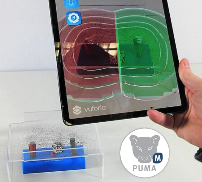 Die Applikation "PUMA : Magnetlabor" stellt eine Rahmenapp für verschiedene Experimentierstationen eines Lehr-Lern-Labors dar. Für die sechs verschiedenen Stationen kann jeweils die zu bearbeitende Szene ausgewählt werden. Die App dient hauptsächlich dazu Magnetfelder und atomare Strukturen des Versuches anzuzeigen. Mittels automatisch ablaufender Animationen kann die innere Logik der verschiedenen Prozesse und deren Abhängigkeiten direkt gezeigt werden. Manche Szenen lassen Interaktionen mit dem Realversuch zu.