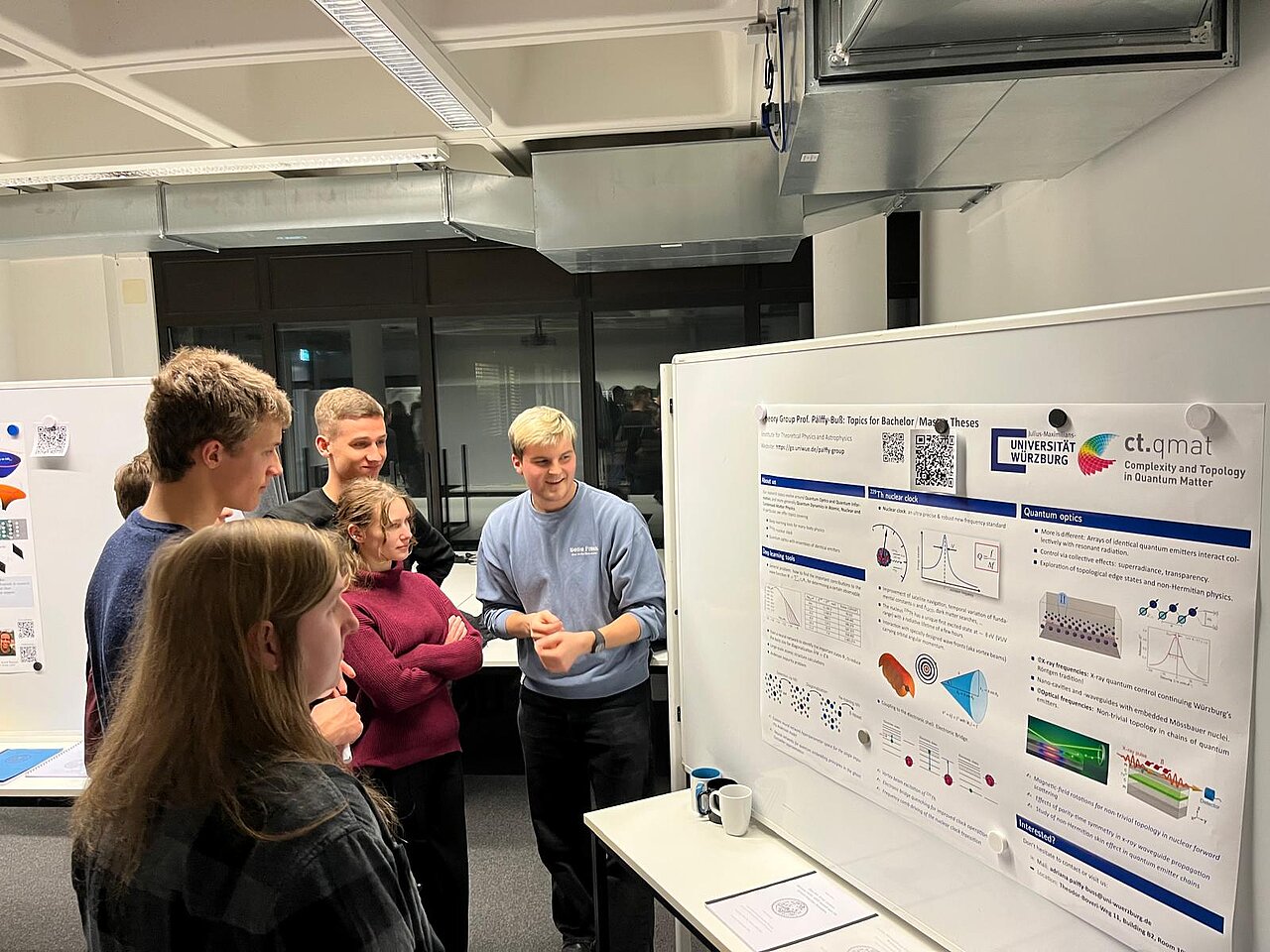 28.11.2025On Wednesday, the 26th of November, our group participated in the research info evening of the faculty. The purpose of this event was to get in touch with undergraduate students and to give them an insight into the day-to-day work of the different research groups. Moreover, students could obtain information about possible theses projects. Adriana, Alex, and Chiara presented a poster with our research topics and had vivid discussions with the students. Apart from physics, there was a small Christmas market during the event with hot drinks, snacks, and "Kaiserschmarrn" which was sponsored by Adriana.